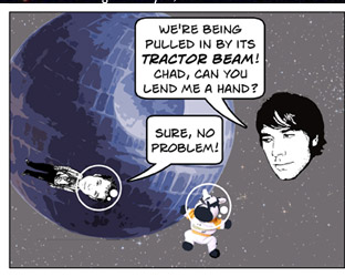 DISCLAIMER: Star Wars and associated character, planet, vehicle, and creature names are registered trademarks of  Lucasfilm Ltd, which does not sponsor, authorize, or endorse this site. This is a fan-produced parody comic. Original film images are copyright Lucasfilm Ltd, and are used here only as a vehicle for parody. The comic images may not be redistributed or sold.