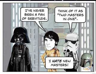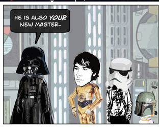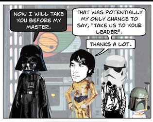 DISCLAIMER: Star Wars and associated character, planet, vehicle, and creature names are registered trademarks of  Lucasfilm Ltd, which does not sponsor, authorize, or endorse this site. This is a fan-produced parody comic. Original film images are copyright Lucasfilm Ltd, and are used here only as a vehicle for parody. The comic images may not be redistributed or sold.