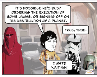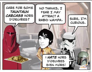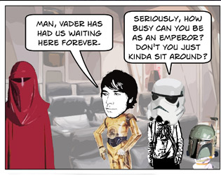 DISCLAIMER: Star Wars and associated character, planet, vehicle, and creature names are registered trademarks of  Lucasfilm Ltd, which does not sponsor, authorize, or endorse this site. This is a fan-produced parody comic. Original film images are copyright Lucasfilm Ltd, and are used here only as a vehicle for parody. The comic images may not be redistributed or sold.