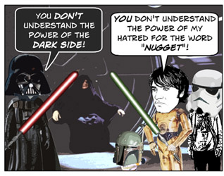 DISCLAIMER: Star Wars and associated character, planet, vehicle, and creature names are registered trademarks of  Lucasfilm Ltd, which does not sponsor, authorize, or endorse this site. This is a fan-produced parody comic. Original film images are copyright Lucasfilm Ltd, and are used here only as a vehicle for parody. The comic images may not be redistributed or sold.